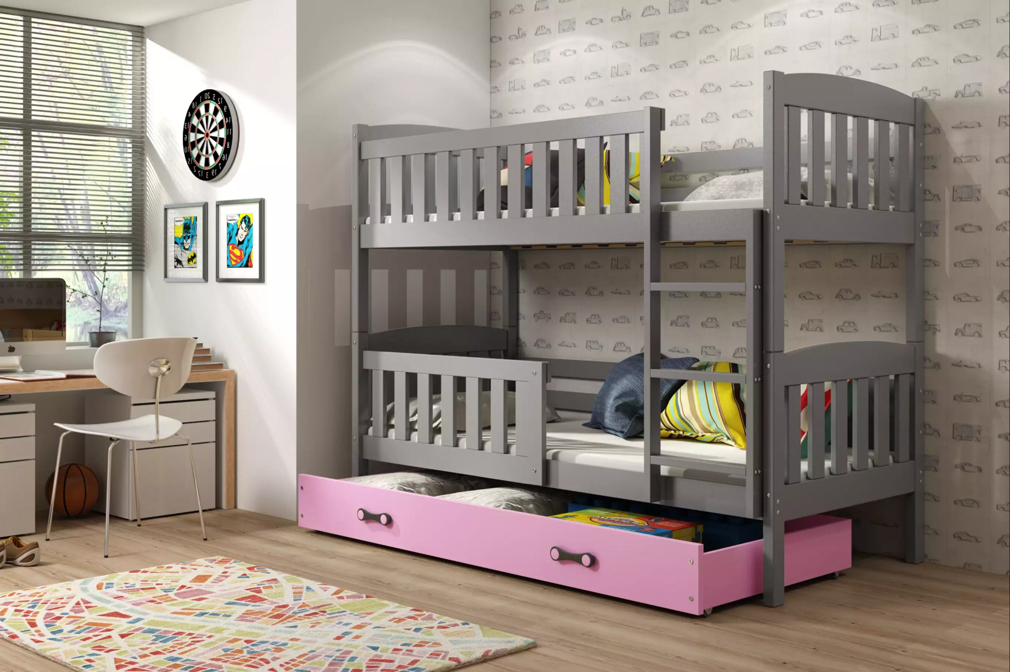 KUBUŚ PIĘTROWE RAMA GRAFIT SZUFLADA RÓŻOWY 90 X 200 KPL