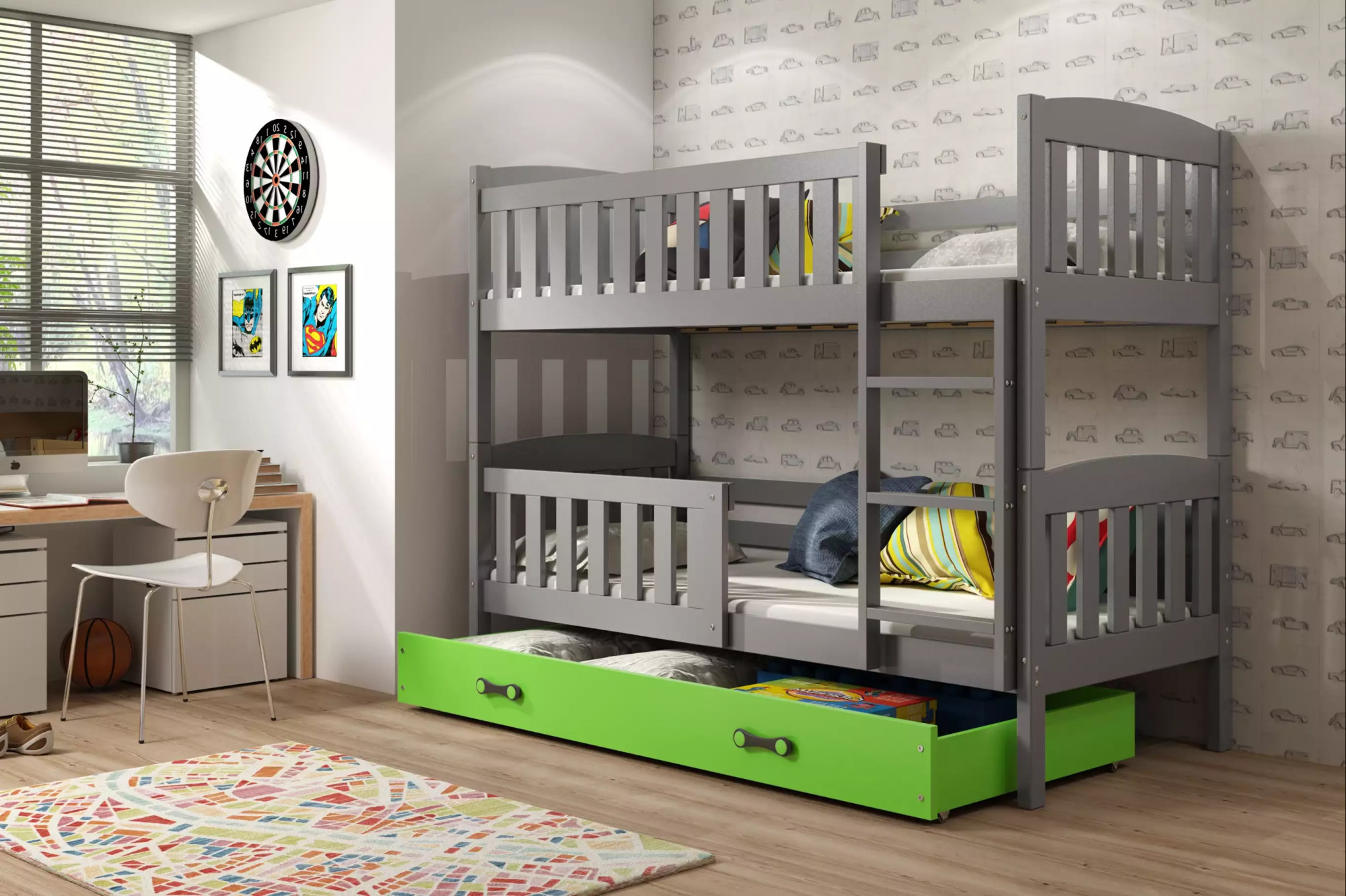 KUBUŚ PIĘTROWE RAMA GRAFIT SZUFLADA ZIELONY 90 X 200 KPL