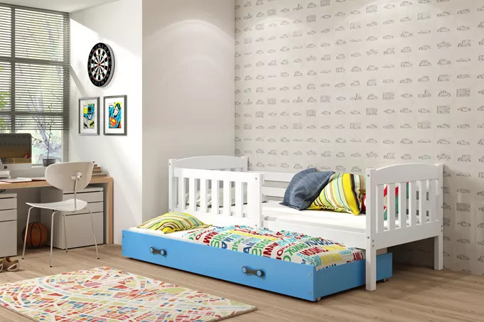KUBUŚ PODWÓJNE RAMA BIAŁY SZUFLADA NIEBIESKI 90 X 200 KPL
