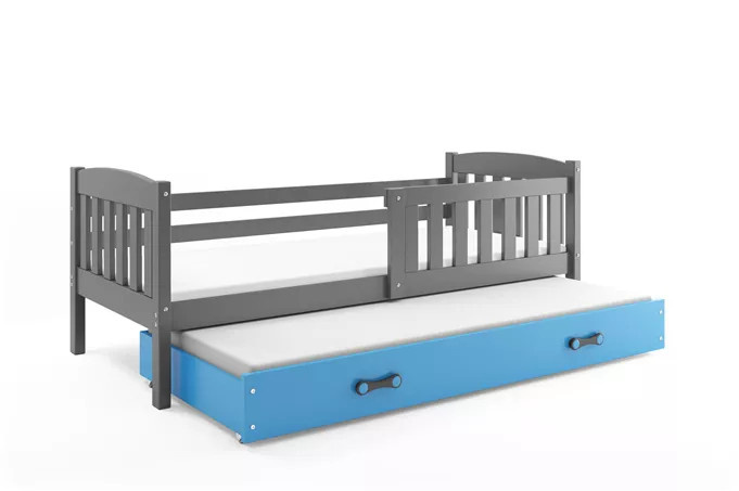 KUBUŚ PODWÓJNE RAMA GRAFIT SZUFLADA NIEBIESKI BEZ MATERACY 80 X 190 KPL