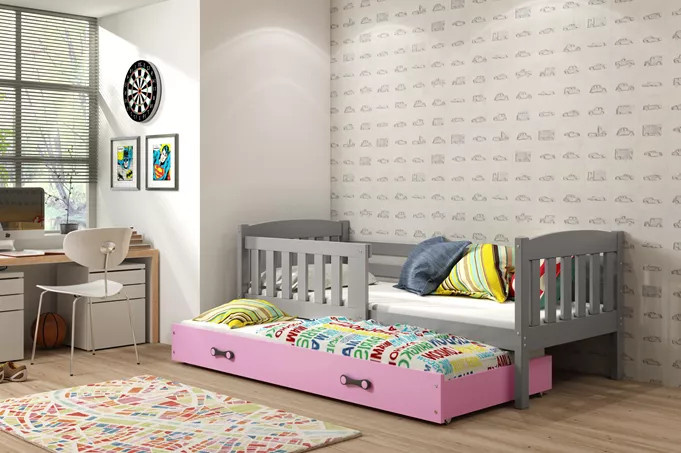 KUBUŚ PODWÓJNE RAMA GRAFIT SZUFLADA RÓŻOWY 80 X 190 KPL