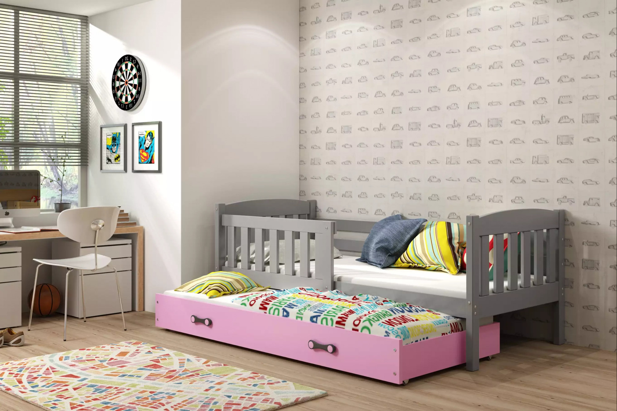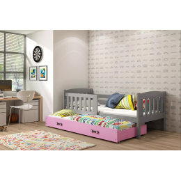 KUBUŚ PODWÓJNE RAMA GRAFIT SZUFLADA RÓŻOWY BEZ MATERACY 80 X 190 KPL