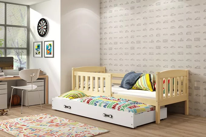 KUBUŚ PODWÓJNE RAMA SOSNA SZUFLADA BIAŁY 90 X 200 KPL