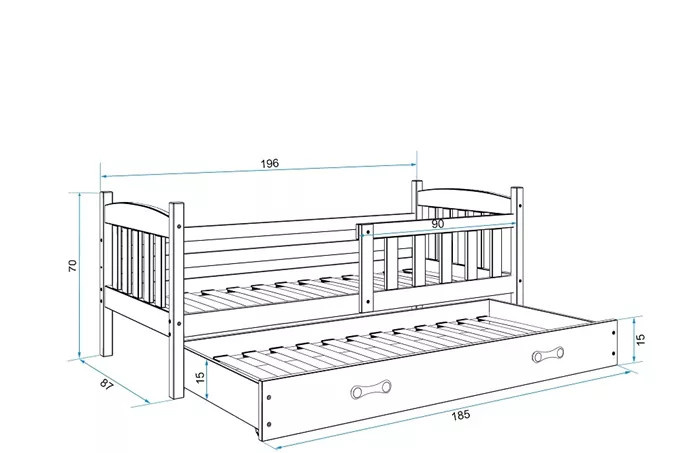 - Szuflada - wykonana z płyty wiórowej, posiada funkcję dodatkowego spania.