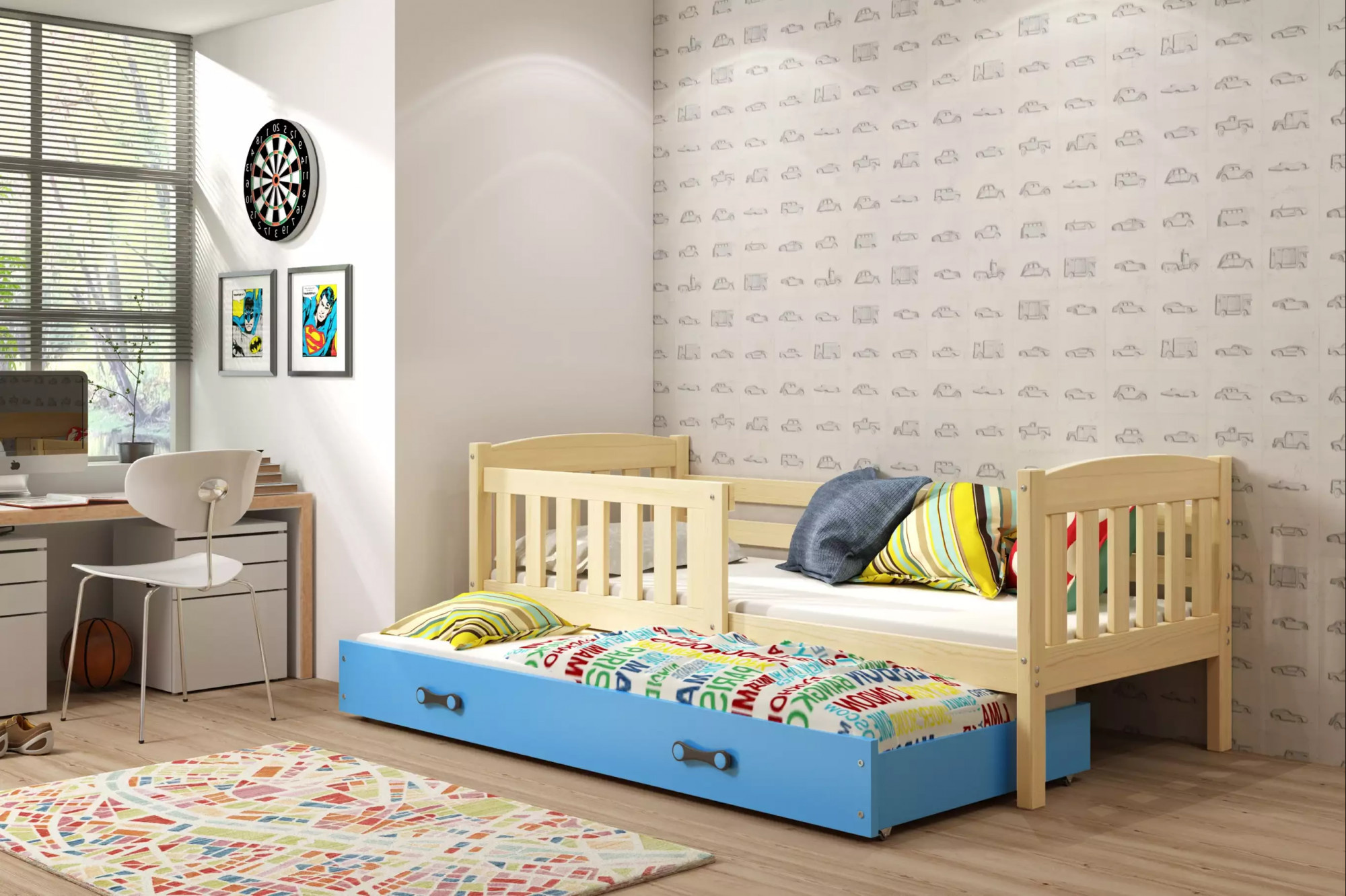 KUBUŚ PODWÓJNE RAMA SOSNA SZUFLADA NIEBIESKI BEZ MATERACY 80 X 190 KPL
