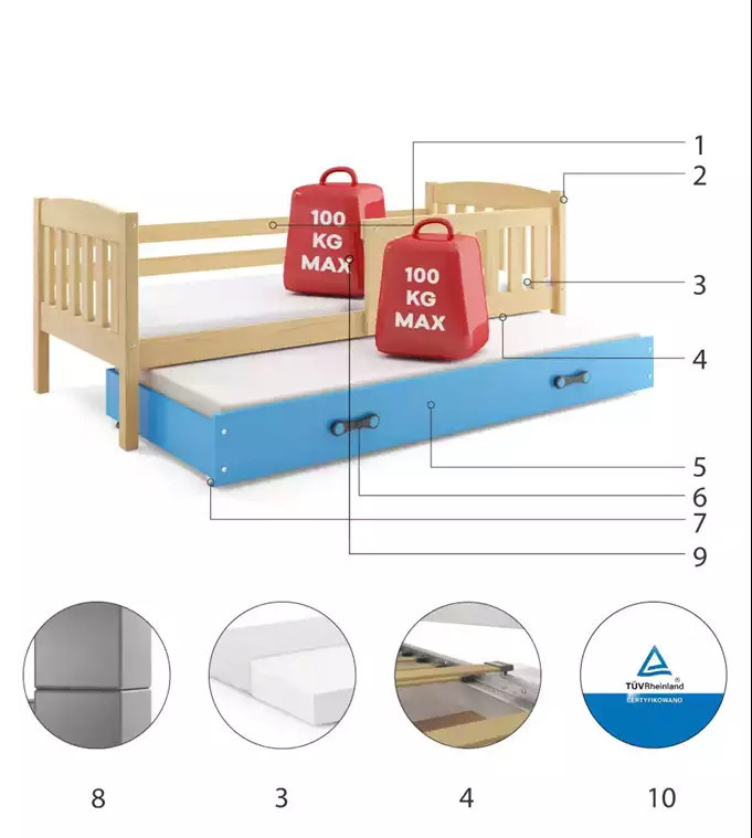 - Certyfikowane łóżko - jakość i bezpieczeństwo zgodnie z normami TUV.