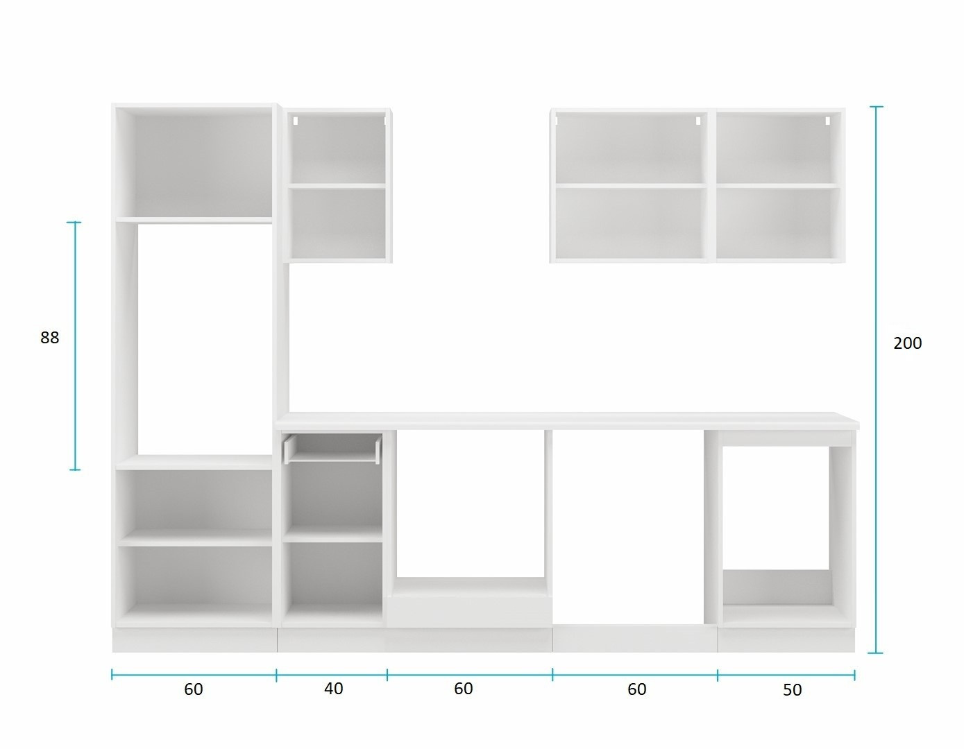 Zboží je dodáváno v demontu, součástí je montážní plánek včetně všech potřebných spojovacích materiálů. Vyobrazené spotřebiče, dřez, baterie a dekorace nejsou v ceně.