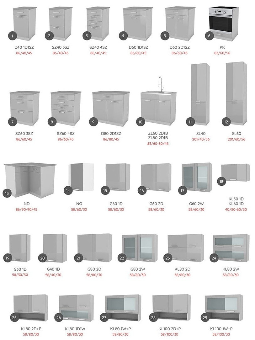 Moderní kuchyňská skříňka, kterou je možné objednat v matu nebo ve vysokém lesku. Sokl a korpusy skříněk jsou v bílé barvě. Úchyty jsou plastové v šedém barevném provedení. Skříňky jsou vyrobeny z foliované MDF ve vysokém lesku. Barvu si můžete vybrat ze vzorníku viz obrázky v doplňkových fotografiích. Skříňka je dodávána bez pracovní desky. Kuchyňské skříňky Femme jsou kompatibilní ke kuchyním Devil, Dakota, Alien, Nikaia, Gigue, Carrie, Lars, Sanader a Taisa. Svou vysněnou kuchyň si můžete sestavit buď z jednotlivých skříněk nebo skříňky dokoupit ke kuchyňské sestavě. Skříňka je dodávána v demontu.