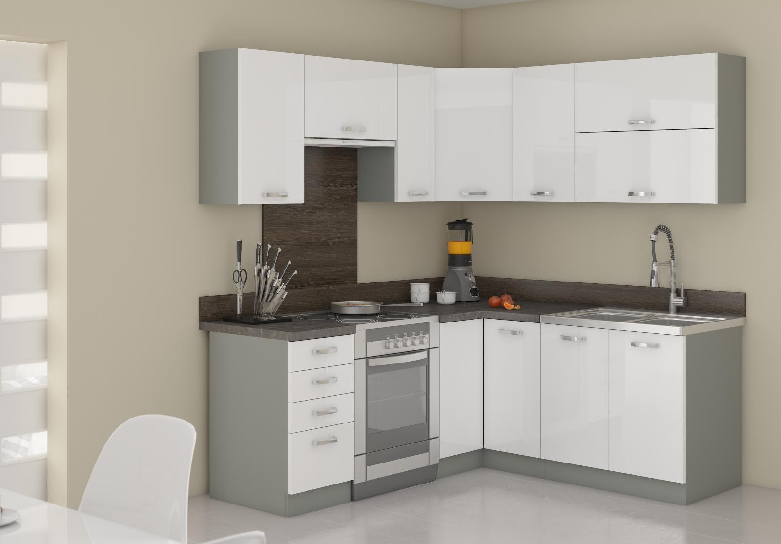 - SOLA konyha - Fehér/Szürke Fényes