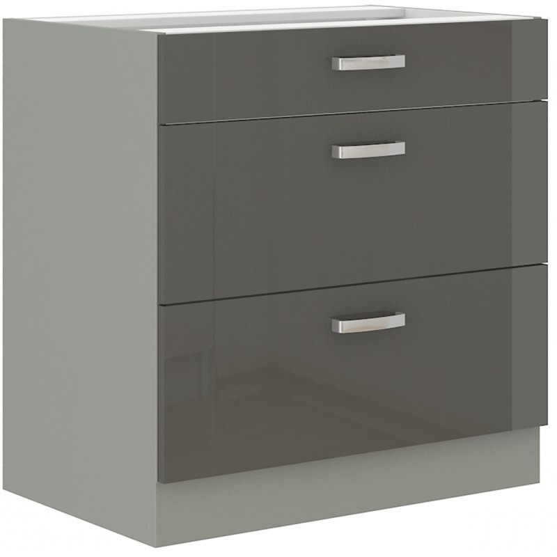 Kuchyňská dolní skříňka GARID 80 D 3S BB, Šedý lesk/Šedá