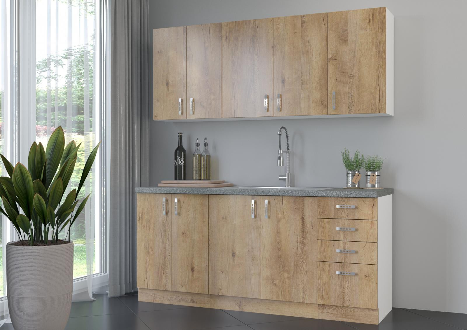 Kuchyňská skříňka Sally 80GS je vyrobena z lamina tloušťky 16 mm bílé barvy a s dvířky v odstínu dub lefkas/sklo. Vyberte si z naší široké nabídky skříněk a vytvořte si kuchyň dle vlastních představ. Může být rohová, rovná, krátká i dlouhá. Fantazii se meze nekladou. V doplňkových fotografiích najdete pro inspiraci fotky kuchyní, které jsou z těchto skříněk sestaveny. Skříňka je dodávaná v demontu. Součástí je montážní plánek včetně všech potřebných spojovacích materiálů.