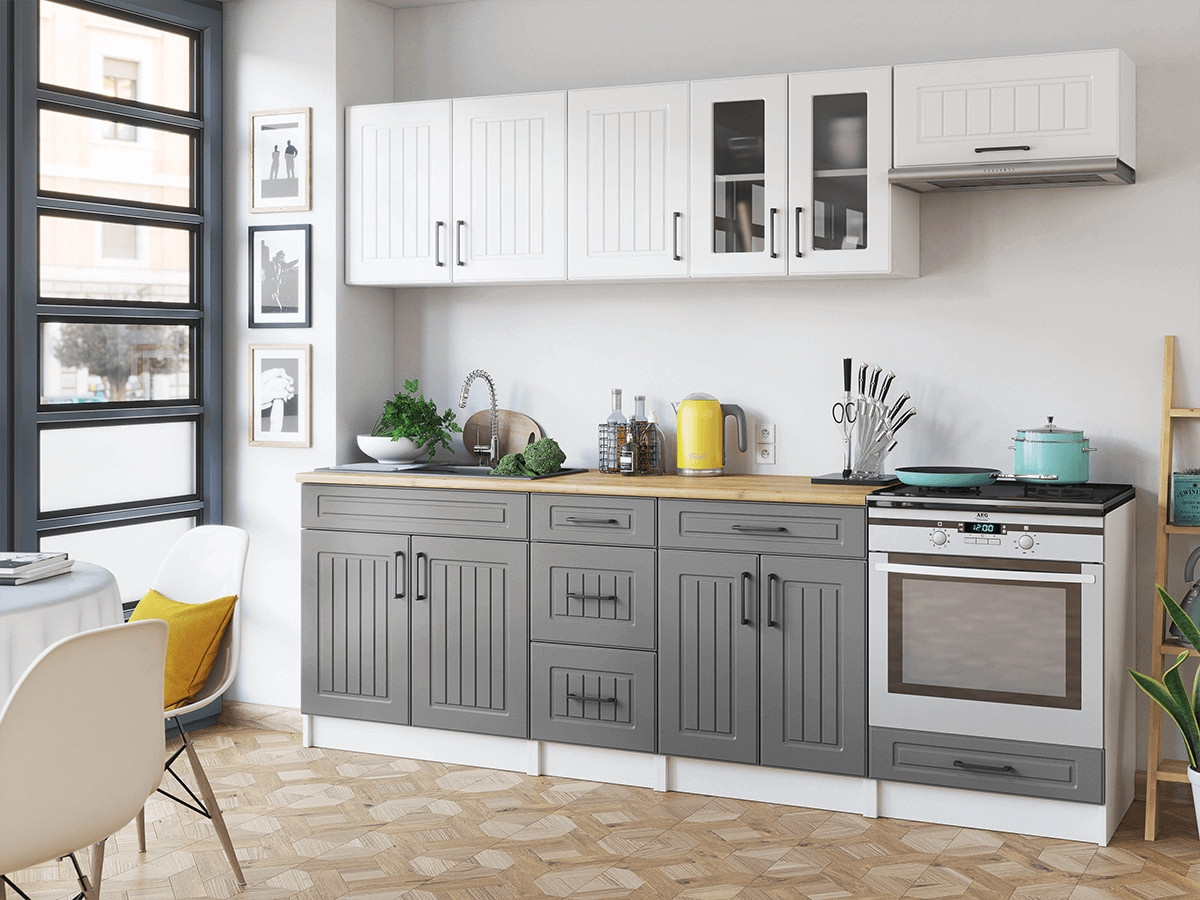 Kuchyňská linka Běla je vyrobená ve velmi oblíbeném venkovském stylu, který se hodí do kuchyně v paneláku i v rodinném domě. Tento styl má jedinečnou schopnost proměnit Vaši kuchyň v útulnou a zároveň funkční místnost, kde bude radost vařit i péct. Kuchyňská linka Běla nabízí dostatek úložného i pracovního prostoru. Všechny skříňky jsou samostatné, takže si je můžete sestavit tak, jak Vám to vyhovuje. Korpusy skříněk jsou vyrobené z lamina 18 mm s hranami ABS a dvířka jsou MDF 16mm. Všechny skříňky jsou dodávány v demontu. Součástí balení je montážní plánek včetně všech potřebných spojovacích materiálů. Cena je uvedena za sestavu vyobrazenou na úvodní fotografii BEZ PRACOVNÍ DESKY, s úchytkami, které jsou vyobrazeny v doplňkových fotografiích. Pracovní desku lze dokoupit nad každou skříňku zvlášť podle její šíře. Vyobrazené spotřebiče, dřez, baterie, doplňky a dekorace nejsou v ceně. Zobrazení barev na fotografii se může od skutečnosti lišit.