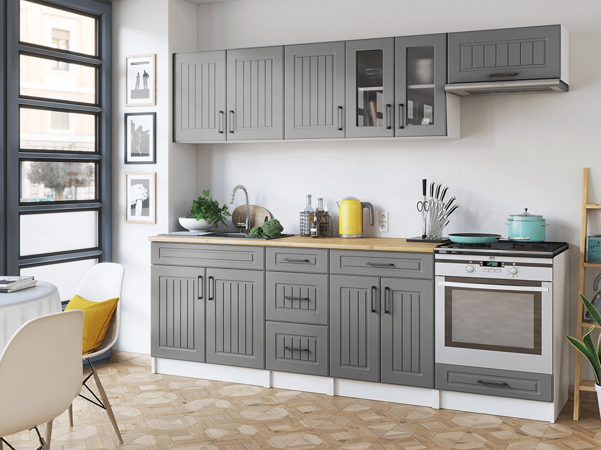 Kuchyňská linka Běla je vyrobená ve velmi oblíbeném venkovském stylu, který se hodí do kuchyně v paneláku i v rodinném domě. Tento styl má jedinečnou schopnost proměnit Vaši kuchyň v útulnou a zároveň funkční místnost, kde bude radost vařit i péct. Kuchyňská linka Běla nabízí dostatek úložného i pracovního prostoru. Všechny skříňky jsou samostatné, takže si je můžete sestavit tak, jak Vám to vyhovuje. Korpusy skříněk jsou vyrobené z lamina 18 mm s hranami ABS a dvířka jsou MDF 16mm. Všechny skříňky jsou dodávány v demontu. Součástí balení je montážní plánek včetně všech potřebných spojovacích materiálů. Cena je uvedena za sestavu vyobrazenou na úvodní fotografii BEZ PRACOVNÍ DESKY, s úchytkami, které jsou vyobrazeny v doplňkových fotografiích. Pracovní desku lze dokoupit nad každou skříňku zvlášť podle její šíře. Vyobrazené spotřebiče, dřez, baterie, doplňky a dekorace nejsou v ceně. Zobrazení barev na fotografii se může od skutečnosti lišit.