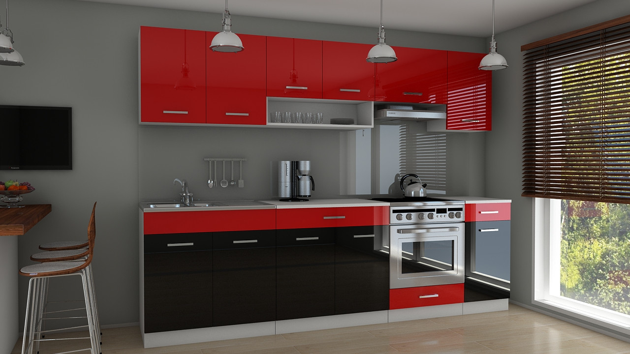 Kuchyňská linka Carrie 260 červený/černý lesk