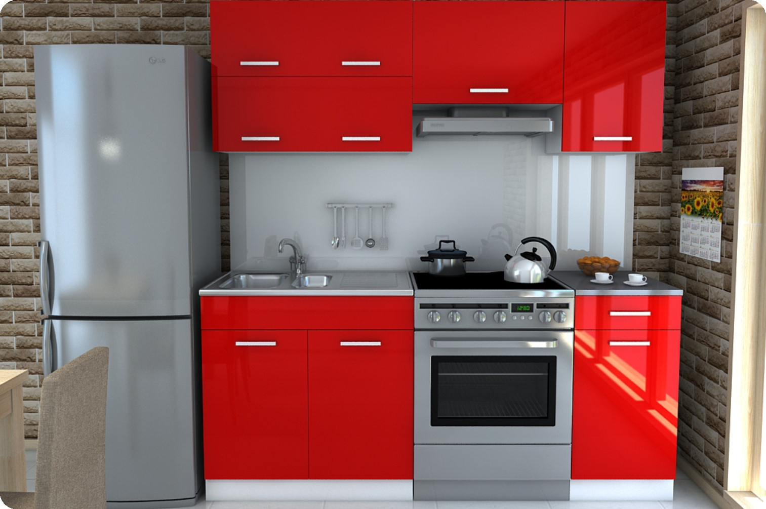 Kuchyňská linka Daniela 180/120 červená LESK