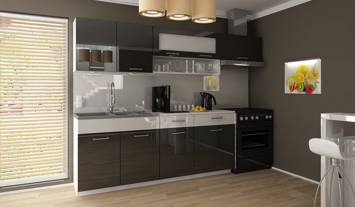 Kuchyňská linka Dolomiti 180/240 černý lesk/bílý pruh