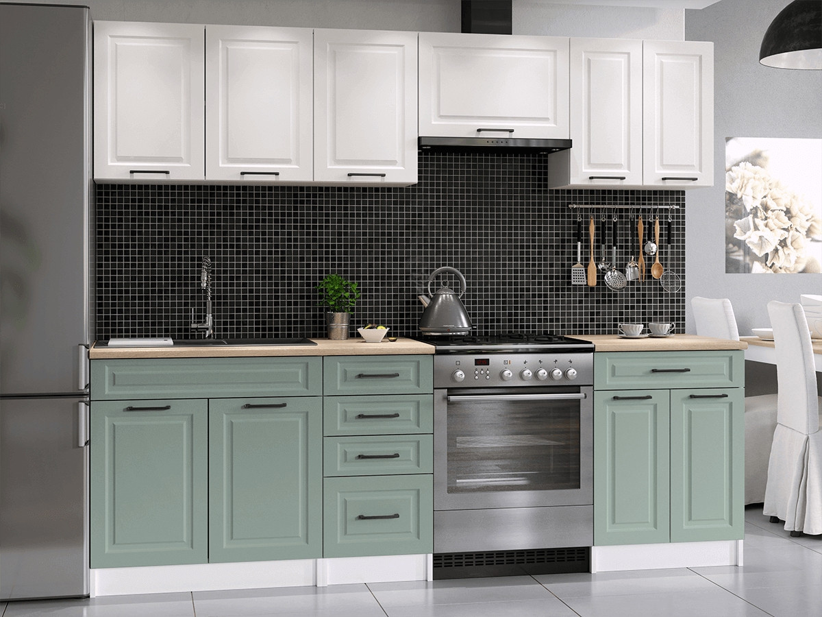 Kuchyňská linka Ilona 240/180 bílá/sv.zelená MAT