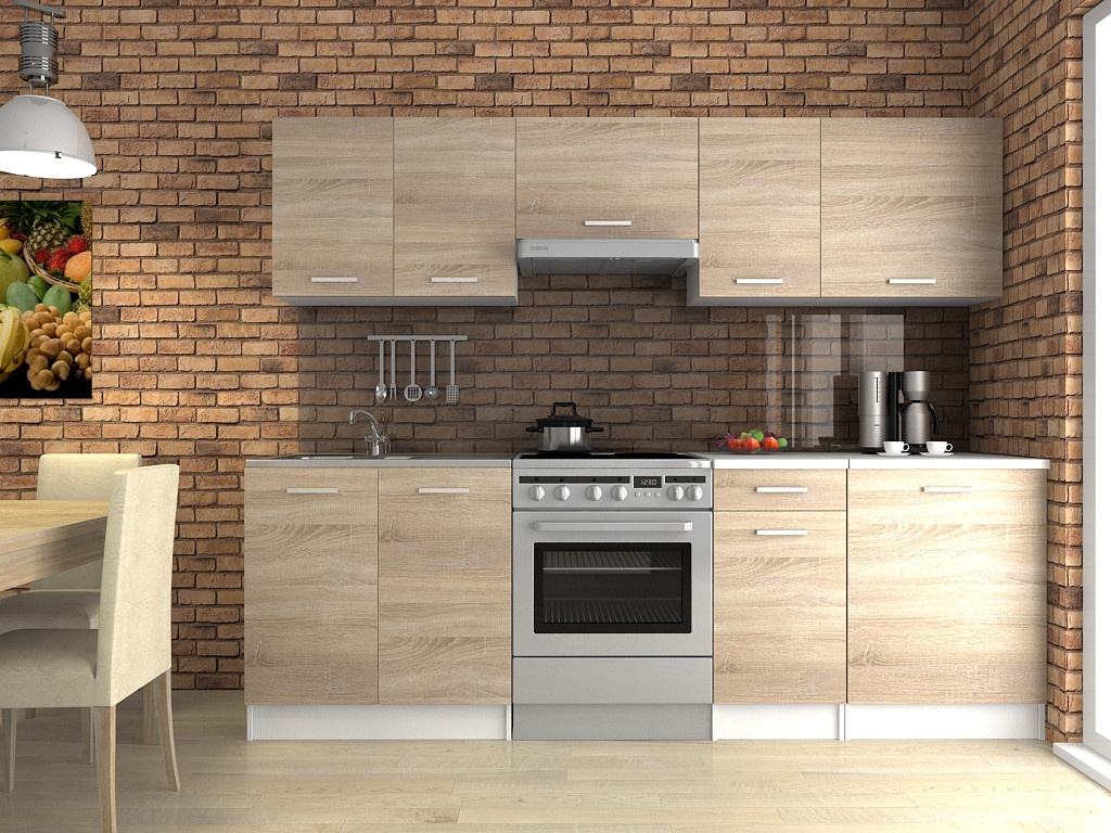 Kuchyňská linka Luigi je ideální volbou pro Vaši kuchyň. Je moderní a zároveň i praktická. Skříňky nabízejí dostatek úložného prostoru. Je vyrobená z lamina, které je odolné a snadné na údržbu. Díky svým rozměrům je vhodná i do malých kuchyní. Skříňky si můžete sestavit libovolně. Kuchyňská linka je dodávaná v demontu. Součástí balení je montážní plánek včetně všech potřebných spojovacích materiálů. Cena je uvedena za sestavu vyobrazenou na úvodní fotografii BEZ PRACOVNÍ DESKY. Kuchyň nabízíme v několika rozměrech i dekorech.Vyobrazené spotřebiče, dřez a dekorace nejsou v ceně.