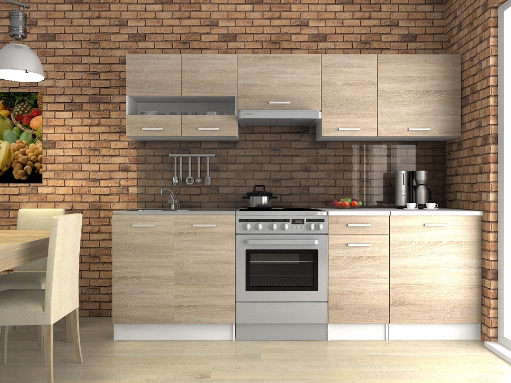 Kuchyňská linka Luigi je ideální volbou pro Vaši kuchyň. Je moderní a zároveň i praktická. Skříňky nabízejí dostatek úložného prostoru. Je vyrobená z lamina, které je odolné a snadné na údržbu. Díky svým rozměrům je vhodná i do malých kuchyní. Skříňky si můžete sestavit libovolně. Kuchyňská linka je dodávaná v demontu. Součástí balení je montážní plánek včetně všech potřebných spojovacích materiálů. Cena je uvedena za sestavu vyobrazenou na úvodní fotografii BEZ PRACOVNÍ DESKY. Kuchyň nabízíme v několika rozměrech i dekorech.Vyobrazené spotřebiče, dřez a dekorace nejsou v ceně.