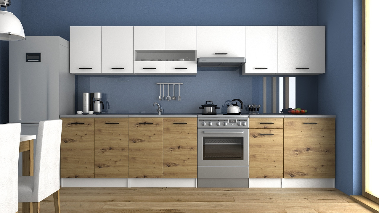 Kuchyňská linka Luigi je ideální volbou pro Vaši kuchyň. Je moderní a zároveň i praktická. Skříňky nabízejí dostatek úložného prostoru. Je vyrobená z lamina, které je odolné a snadné na údržbu. Díky svým rozměrům je vhodná i do malých kuchyní. Skříňky si můžete sestavit libovolně. Kuchyňská linka je dodávaná v demontu. Součástí balení je montážní plánek včetně všech potřebných spojovacích materiálů. Cena je uvedena za sestavu vyobrazenou na úvodní fotografii BEZ PRACOVNÍ DESKY. Kuchyň nabízíme v několika rozměrech i dekorech.Vyobrazené spotřebiče, dřez a dekorace nejsou v ceně.