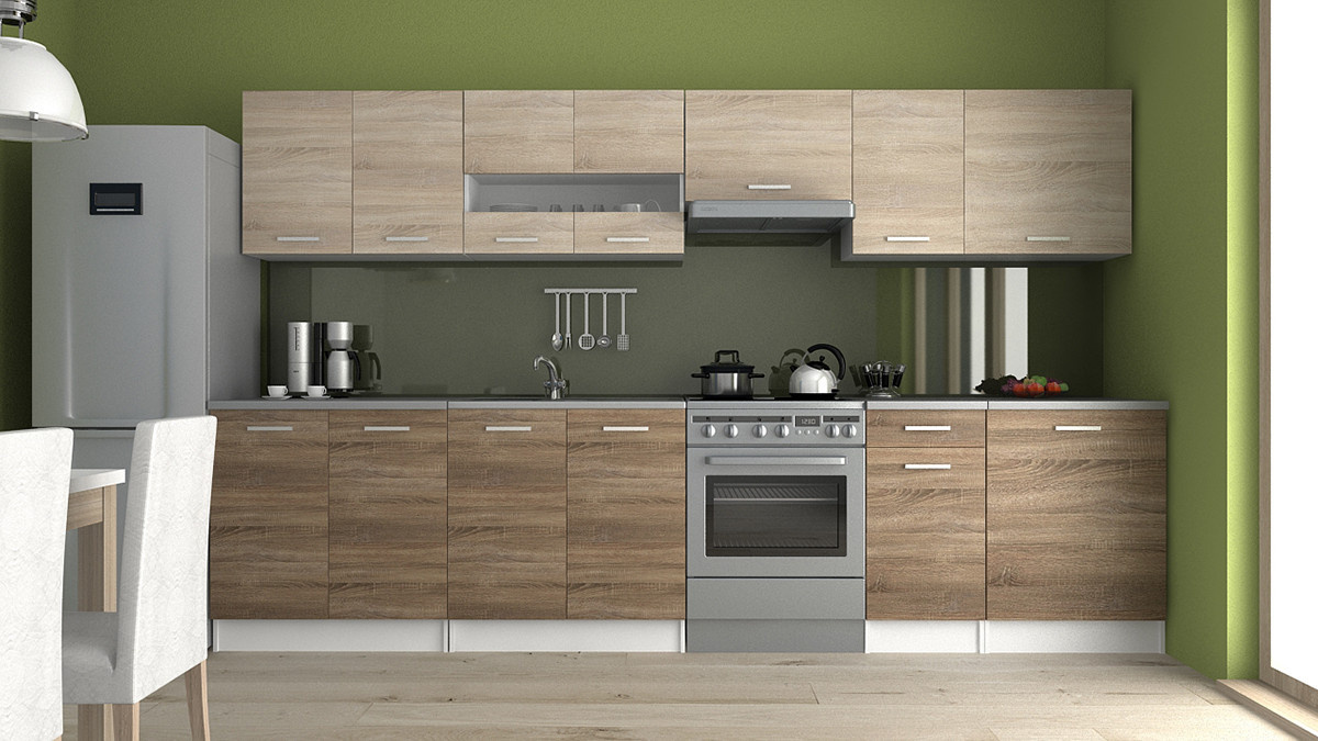 Kuchyňská linka Luigi je ideální volbou pro Vaši kuchyň. Je moderní a zároveň i praktická. Skříňky nabízejí dostatek úložného prostoru. Je vyrobená z lamina, které je odolné a snadné na údržbu. Díky svým rozměrům je vhodná i do malých kuchyní. Skříňky si můžete sestavit libovolně. Kuchyňská linka je dodávaná v demontu. Součástí balení je montážní plánek včetně všech potřebných spojovacích materiálů. Cena je uvedena za sestavu vyobrazenou na úvodní fotografii BEZ PRACOVNÍ DESKY. Kuchyň nabízíme v několika rozměrech i dekorech.Vyobrazené spotřebiče, dřez a dekorace nejsou v ceně.