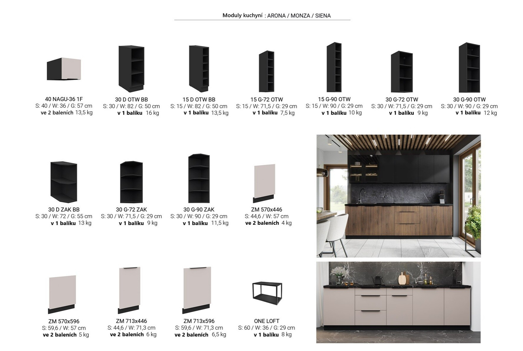 - Možnost kombinace se skřínkami z kuchyně Siena a Arona