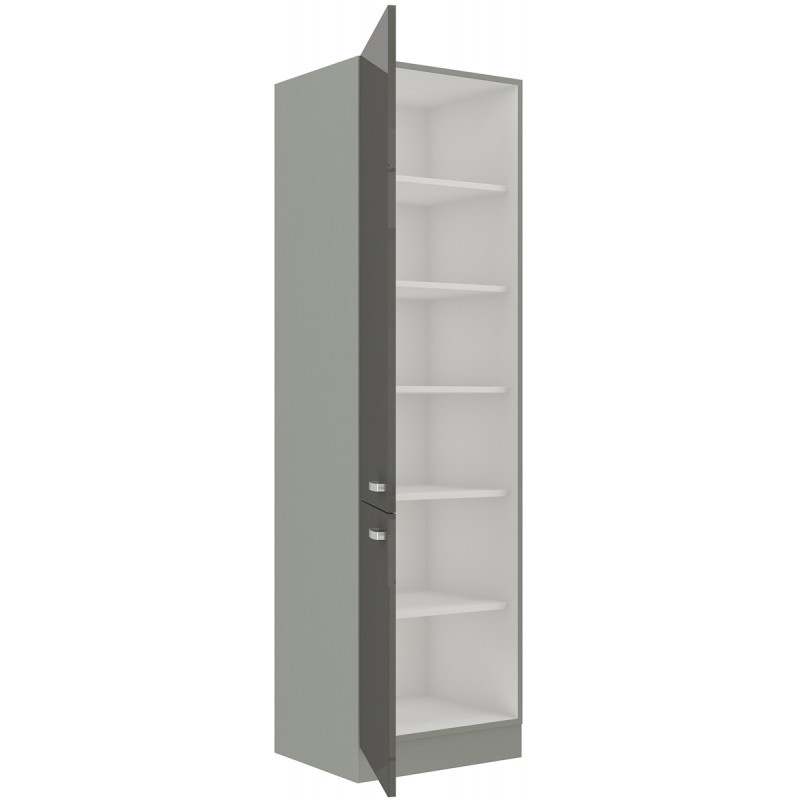 Vysoká dvoudvéřová spodní kuchyňská skříňka je vyrobena z lamina tloušťky 16 mm šedé lesklé barvy. Korpus skříňky je v šedém provedení a vnitřek je bílý. Skříňka je vyrobena z kvalitních MDF desek s kovovým úchytem (délka 135mm). Vnitřek skříňky obsahuje celkem pět polic, které Vám poskytnou dostatek místa k uskladnění všeho, co budete v kuchyni potřebovat. Dvířka jsou vybavena systémem tichého zavírání. Poskládejte si z naší bohaté nabídky skříněk moderní a designovou kuchyň podle Vašich představ. Skříňka je dodávaná v demontu. Součástí je montážní plánek včetně všech potřebných spojovacích materiálů.