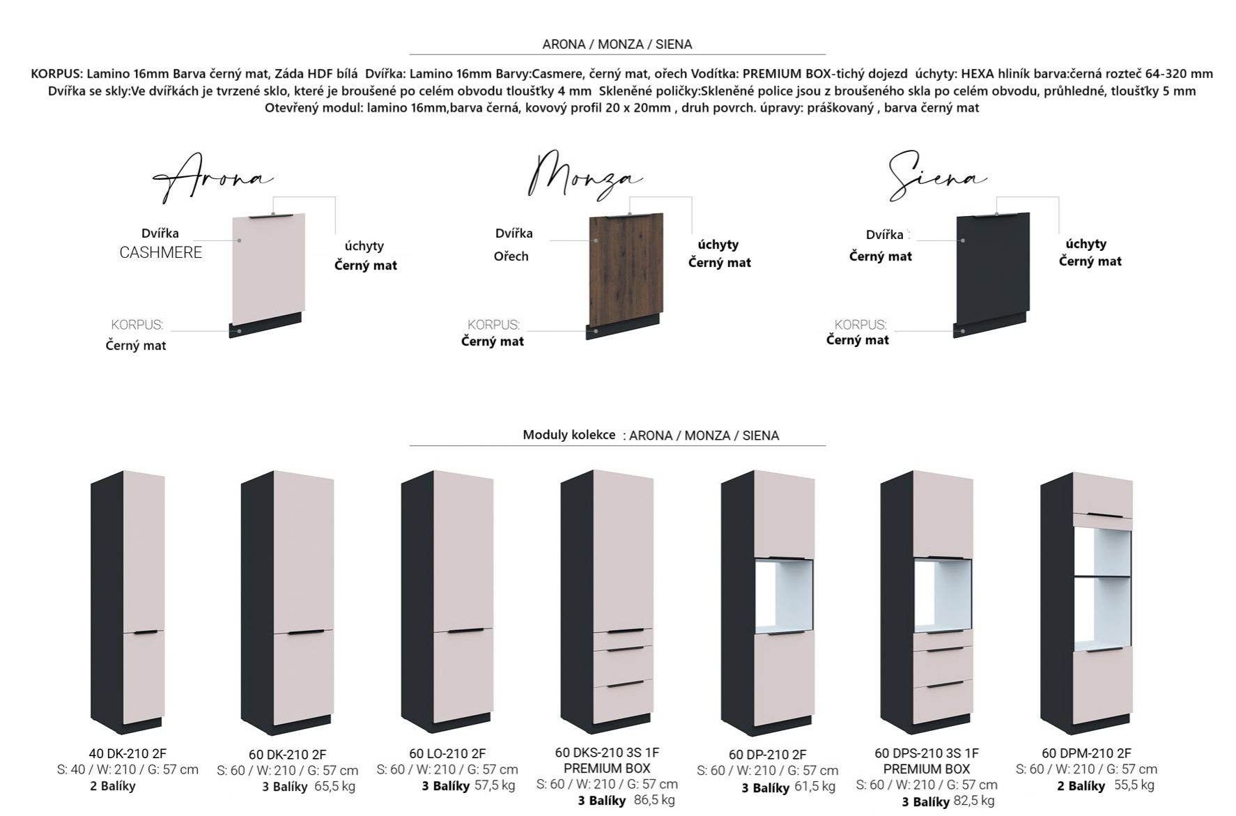 - Možnost kombinace se skřínkami z kuchyně Monza a Arona