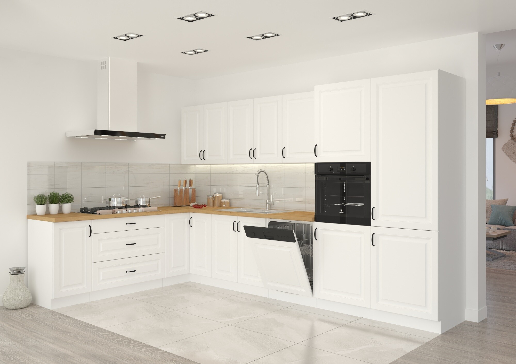 - Dvířka horních, dolních skřínek a dvířka vysokých skříní jsou universální (Pravé/Levé)