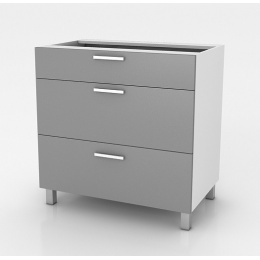 Spodní zásuvková kuchyňská skříňka SZ60 3SZ je vyrobena z lamina bílé barvy a čílka zásuvek jsou ve vysokém lesku v několika trendy odstínech. Skříňka je na nožkách a má 3 praktické zásuvky, které nabízí dostatek úložného prostoru. Díky nožkám je prostor pod skříňkou lépe přístupný při úklidu. Vyberte si z naší široké nabídky skříněk a vytvořte si kuchyň dle vlastních představ. Může být rohová, rovná, krátká i dlouhá. Fantazii se meze nekladou. V doplňkových fotografiích najdete pro inspiraci fotky kuchyní, které jsou z těchto skříněk sestaveny. Skříňka je dodávaná v demontu. Součástí je montážní plánek včetně všech potřebných spojovacích materiálů. Úvodní fotografie je ilustrační. Skříňka bude dodána bez pracovní desky. Správný odstín šedé barvy je zobrazen v doplňkové fotografii.