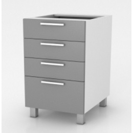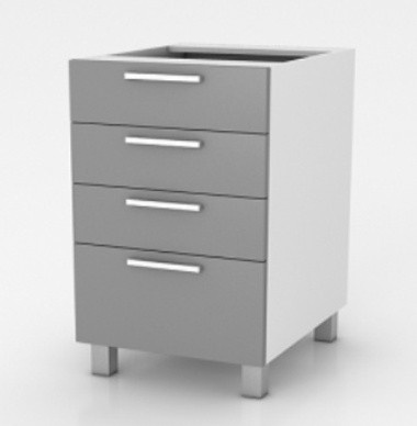 Spodní zásuvková kuchyňská skříňka SZ60 4SZ je vyrobena z lamina bílé barvy a čílka zásuvek jsou ve vysokém lesku v několika trendy odstínech. Skříňka je na nožkách a má 4 praktické zásuvky, které nabízí dostatek úložného prostoru. Díky nožkám je prostor pod skříňkou lépe přístupný při úklidu. Vyberte si z naší široké nabídky skříněk a vytvořte si kuchyň dle vlastních představ. Může být rohová, rovná, krátká i dlouhá. Fantazii se meze nekladou. V doplňkových fotografiích najdete pro inspiraci fotky kuchyní, které jsou z těchto skříněk sestaveny. Skříňka je dodávaná v demontu. Součástí je montážní plánek včetně všech potřebných spojovacích materiálů. Úvodní fotografie je ilustrační. Skříňka bude dodána bez pracovní desky. Správný odstín šedé barvy je zobrazen v doplňkové fotografii.