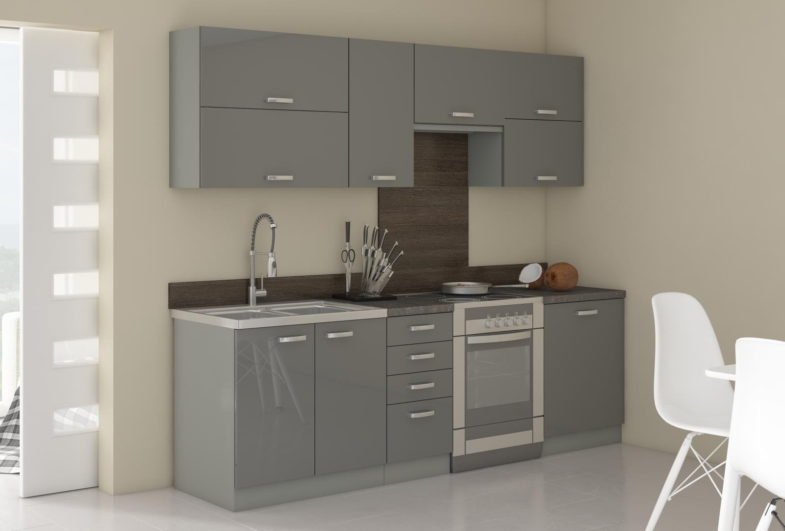 - SOLA konyha - Fehér/Szürke Fényes