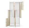 A JULIA ruhásszekrény a tér maximális kihasználásával lett tervezve. Négy tágas, L alakú rekeszre van osztva, amelyek lehetővé teszik a ruhák kényelmes és áttekinthető tárolását. Ennek az elrendezésnek köszönhetően hatékonyan rendszerezheti dolgait, és mindig kéznél tarthatja őket.