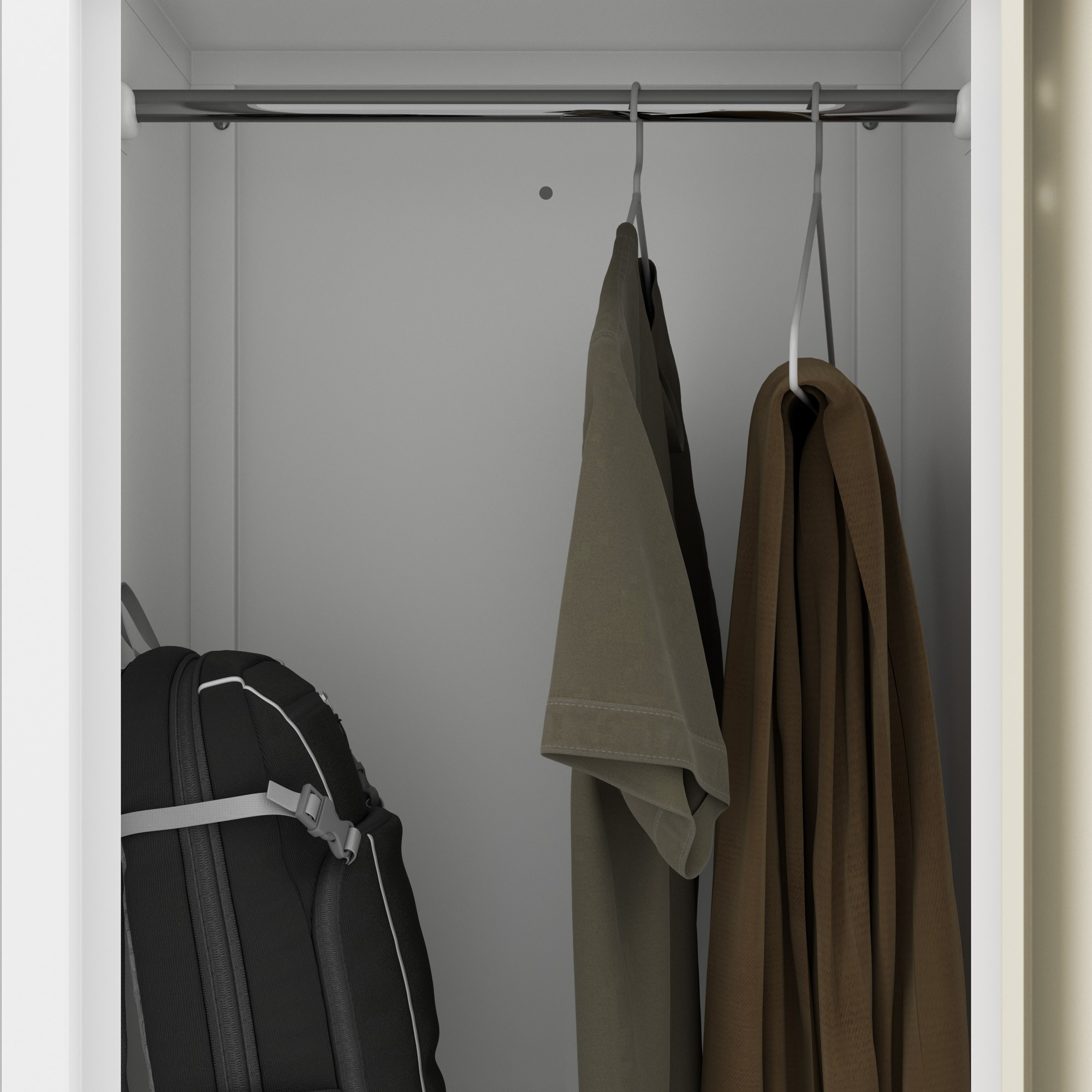 - Ruhafogas rúd: Minden rekeszben található egy ruhafogas rúd, amely megakadályozza a ruhák gyűrődését és tökéletes állapotban tartja azokat.