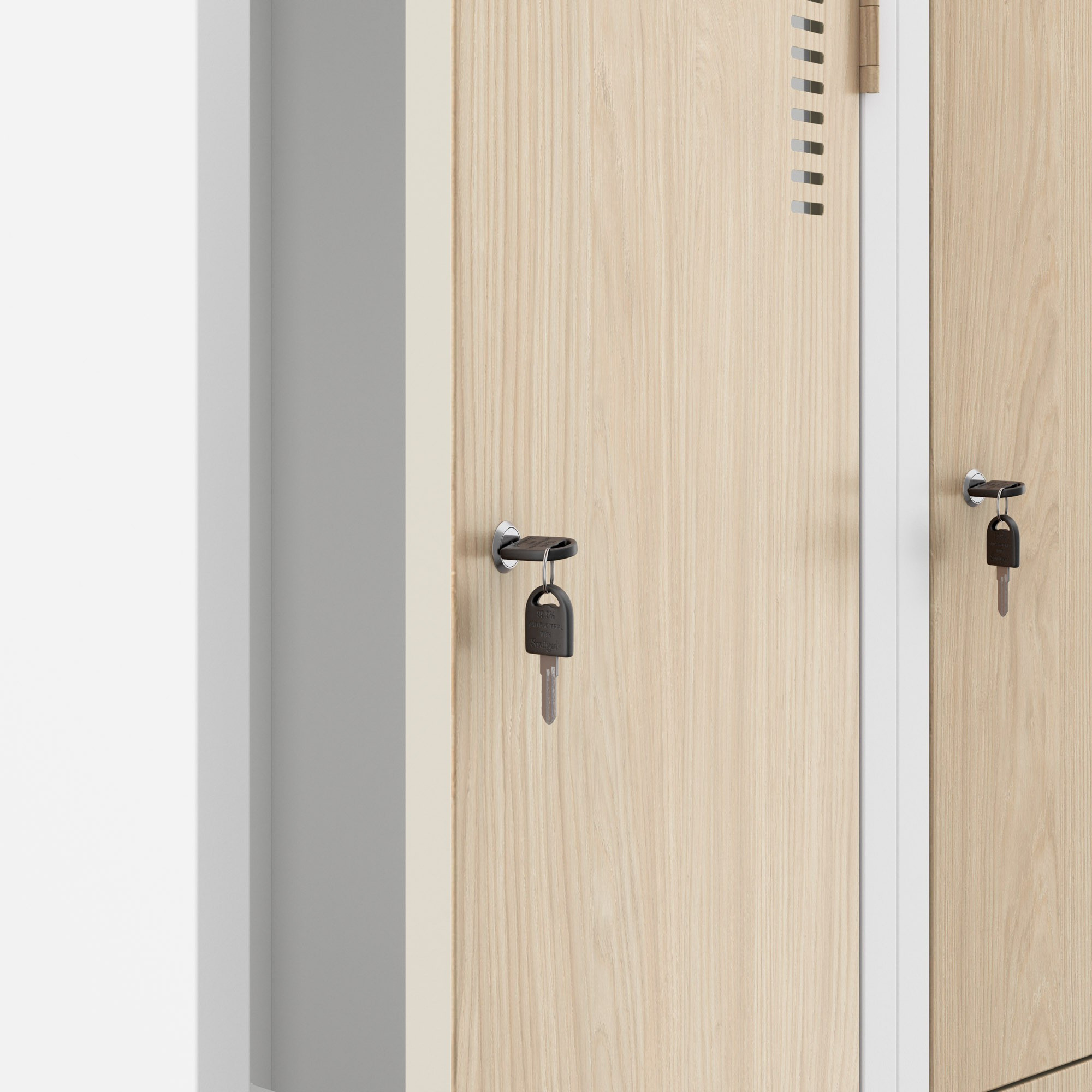 Az egyes rekeszek ajtaján található szellőzőnyílásoknak köszönhetően folyamatos légáramlás biztosított, amely megszünteti a nedvesség és a kellemetlen szagok felhalmozódásának lehetőségét a szekrény belsejében. A ruháid így egész nap friss és illatos marad tárolás után is.