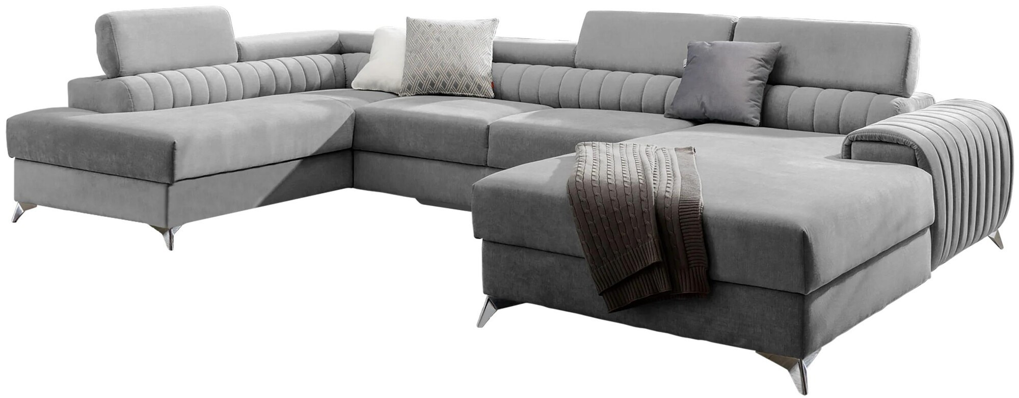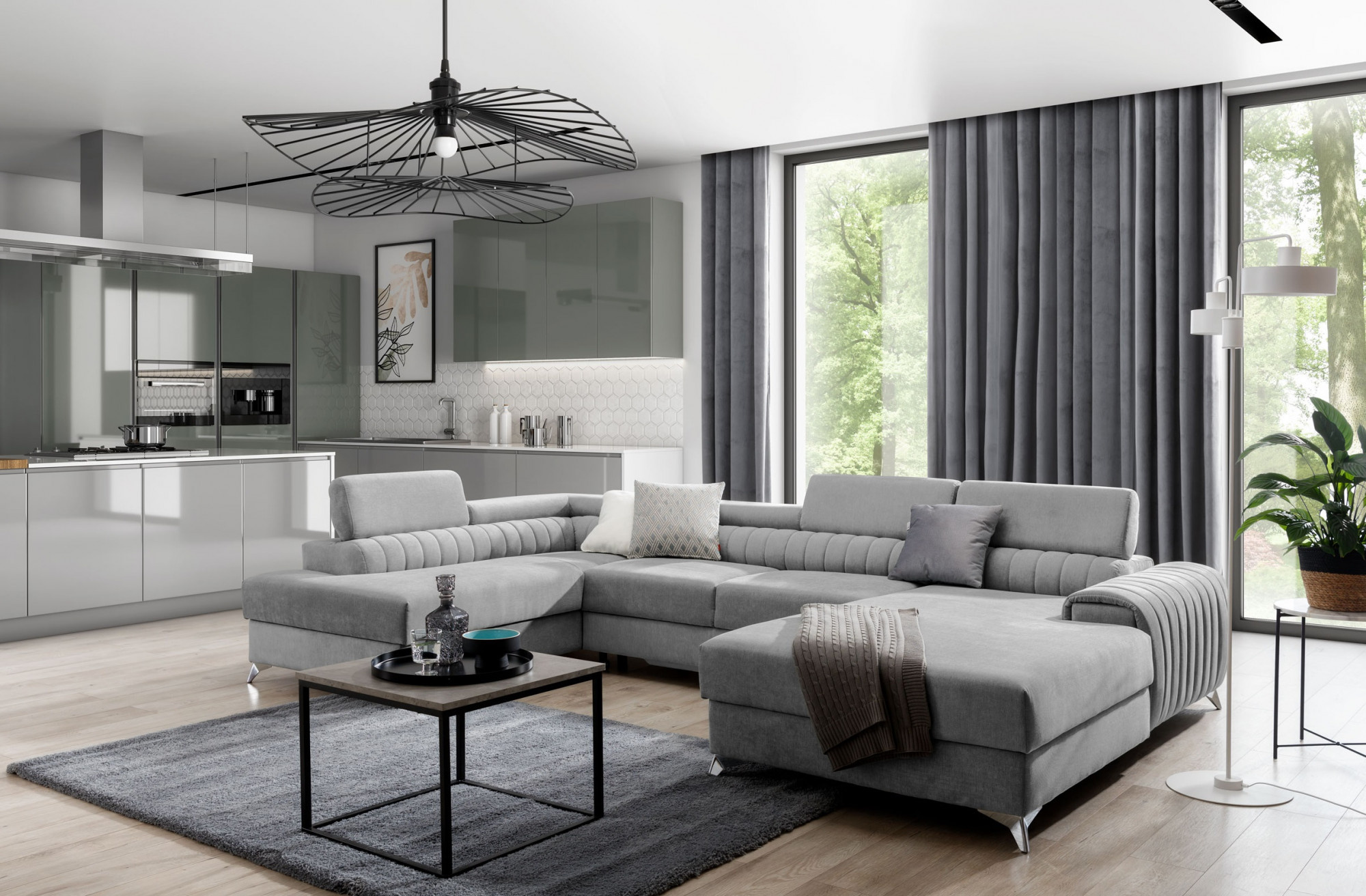 The Lacante corner sofa invites you to relax and take a moment to rest, and it looks perfect at the same time. Moreover, it elevates the modern living space with its interesting body, as well as designer steel chrome legs with a height of 9 centimeters. Lacante also has cozy upholstery to choose from, and as an upholstered furniture manufacturer, we use only the highest quality fabrics. The seat of the furniture is filled with a combination of HR and T30 foams, which provide real comfort. The Lacante corner sofa is also equipped with a bedding container with dimensions: 195 x 93 cm. The corner sofa's advantage is also a sleeping function with an area of 265 x 123 cm. The furniture owes its ability to unfold to the built-in dolphin mechanism. This system is characterized by smoothness and ease of use, so you don't need much strength to cope with turning the corner into a bed. The seat of the corner sofa, made of corrugated spring and a combination of highly elastic HR foam and T30 foam, will certainly promote comfortable rest. And let's not forget the modern adjustable headrests. Thanks to them, you can comfortably lay back and calmly talk, read a book or watch TV. Lacante corner sofa will work well in a traditional, but also in a modern home.