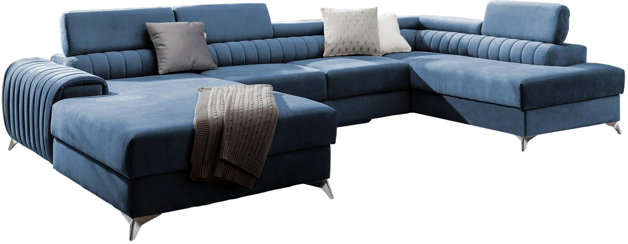 The Lacante corner sofa invites you to relax and take a moment to rest, and it looks perfect at the same time. Moreover, it elevates the modern living space with its interesting body, as well as designer steel chrome legs with a height of 9 centimeters. Lacante also has cozy upholstery to choose from, and as an upholstered furniture manufacturer, we use only the highest quality fabrics. The seat of the furniture is filled with a combination of HR and T30 foams, which provide real comfort. The Lacante corner sofa is also equipped with a bedding container with dimensions: 195 x 93 cm. The corner sofa's advantage is also a sleeping function with an area of 265 x 123 cm. The furniture owes its ability to unfold to the built-in dolphin mechanism. This system is characterized by smoothness and ease of use, so you don't need much strength to cope with turning the corner into a bed. The seat of the corner sofa, made of corrugated spring and a combination of highly elastic HR foam and T30 foam, will certainly promote comfortable rest. And let's not forget the modern adjustable headrests. Thanks to them, you can comfortably lay back and calmly talk, read a book or watch TV. Lacante corner sofa will work well in a traditional, but also in a modern home.