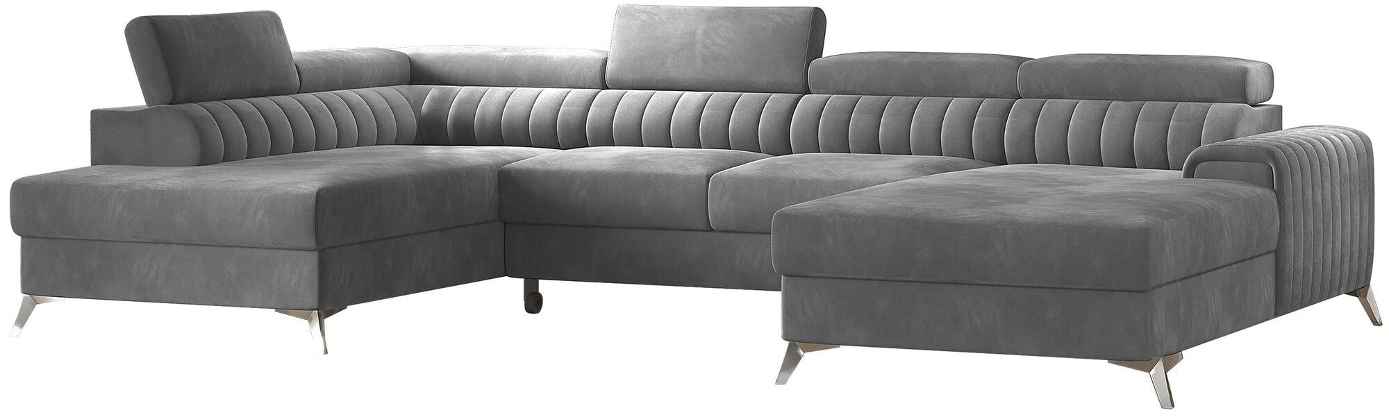 The Lacante corner sofa invites you to relax and take a moment to rest, and it looks perfect at the same time. Moreover, it elevates the modern living space with its interesting body, as well as designer steel chrome legs with a height of 9 centimeters. Lacante also has cozy upholstery to choose from, and as an upholstered furniture manufacturer, we use only the highest quality fabrics. The seat of the furniture is filled with a combination of HR and T30 foams, which provide real comfort. The Lacante corner sofa is also equipped with a bedding container with dimensions: 195 x 93 cm. The corner sofa's advantage is also a sleeping function with an area of 265 x 123 cm. The furniture owes its ability to unfold to the built-in dolphin mechanism. This system is characterized by smoothness and ease of use, so you don't need much strength to cope with turning the corner into a bed. The seat of the corner sofa, made of corrugated spring and a combination of highly elastic HR foam and T30 foam, will certainly promote comfortable rest. And let's not forget the modern adjustable headrests. Thanks to them, you can comfortably lay back and calmly talk, read a book or watch TV. Lacante corner sofa will work well in a traditional, but also in a modern home.