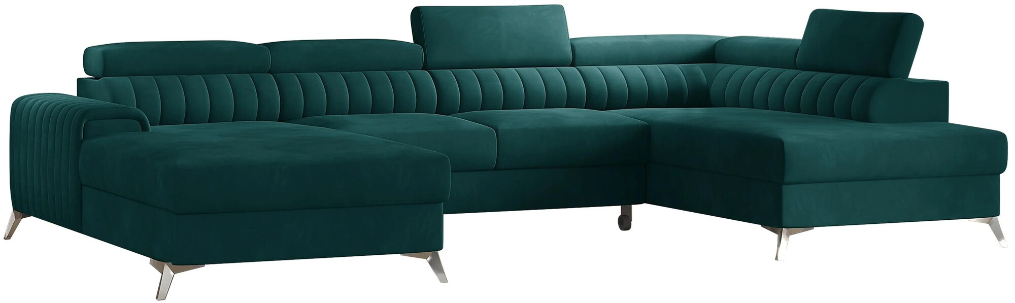 The Lacante corner sofa invites you to relax and take a moment to rest, and it looks perfect at the same time. Moreover, it elevates the modern living space with its interesting body, as well as designer steel chrome legs with a height of 9 centimeters. Lacante also has cozy upholstery to choose from, and as an upholstered furniture manufacturer, we use only the highest quality fabrics. The seat of the furniture is filled with a combination of HR and T30 foams, which provide real comfort. The Lacante corner sofa is also equipped with a bedding container with dimensions: 195 x 93 cm. The corner sofa's advantage is also a sleeping function with an area of 265 x 123 cm. The furniture owes its ability to unfold to the built-in dolphin mechanism. This system is characterized by smoothness and ease of use, so you don't need much strength to cope with turning the corner into a bed. The seat of the corner sofa, made of corrugated spring and a combination of highly elastic HR foam and T30 foam, will certainly promote comfortable rest. And let's not forget the modern adjustable headrests. Thanks to them, you can comfortably lay back and calmly talk, read a book or watch TV. Lacante corner sofa will work well in a traditional, but also in a modern home.