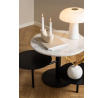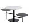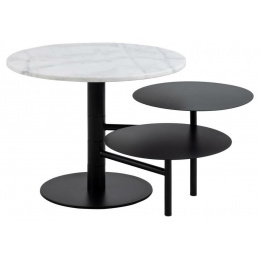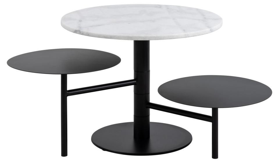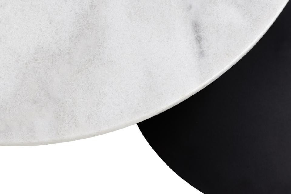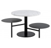 Lahti kerek konferenciaasztal, Guangxi fehér csiszolt márvány asztallappal és matt fekete porszórt acéllal, matt fekete porszórt acél alappal, forgó mechanizmussal. A rugalmasságot szem előtt tartva tervezett, 3 szintes asztal 2 forgatható karral rendelkezik, amelyek lehetővé teszik a lap egyéni beállítását. Középen egy fehér márványlap található, amely körül minden kar egy karcsú fekete lapot tart, különböző magasságban beállítva. A fehér márvány és a fekete acél kombinációja elbűvölő központi elemet hoz létre a modern nappaliban. O60x45;O40x35;O40x25 méretek. Összeszerelést igényel.