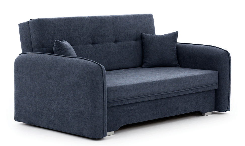 Excellent design, well-thought-out composition and minimalist look – this is what the Laine pull-out bed is all about. This piece of furniture is extremely comfortable, thanks to the filling in the form of Bonell springs and the T25 foam. In addition, our pull-out bed is equipped with a bedding container, so it is a great place to store additional pillows or blankets. The legs of Laine are made of plastic and they are only 3 centimetres high. The pull-out bed's dimensions are: 155x105x75 cm and it will bring elegant style and functionality into any living room, bedroom or home office. Laine can be very quickly turned into a bed with the area of of 196x125 cm. It is surely an ideal option for evening film screenings. The interesting decorations in the form of quilting on the back add to the visual side of the Laine pull-out bed. In addition, this piece of furniture includes two decorative pillows in the same colour as the bed itself. Laine is an ideal choice for the fans of minimalistic and natural solutions in interior design.