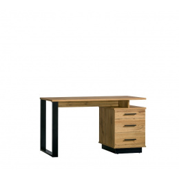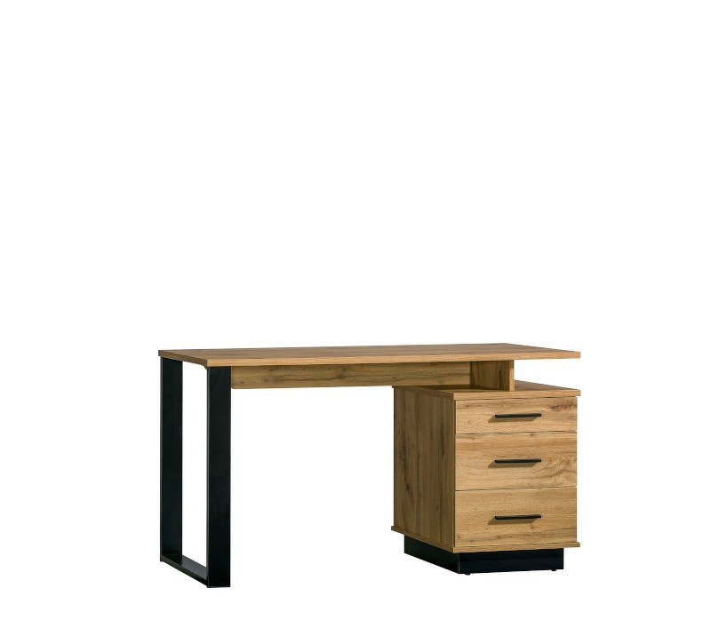 Íróasztal három fiókkal és két polccal.