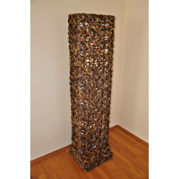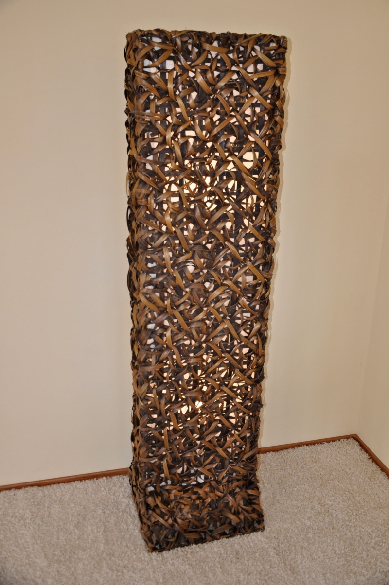 Lampa s kovovou konstrukcí a výpletem z přírodního bambusu. Stínítko je čalouněno látkou z vnitřní strany. | Lampa je určena do interiéru. Lampa je navržena pro použití LED žárovek či úsporných světelných zdrojů. V žádném případě nepoužívejte klasické žárovky, které jsou během provozu velice teplé. Velikost lampy je 46x20x200 cm Součástí dodávky jsou 2 kusy vysoce úsporných LED žárovek o příkonu 6W a světelném toku 550 Lm.