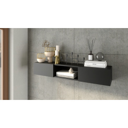 The Lanzzi hanging shelf is a unique piece of furniture with a recess in the center and a shelf for display, as well as two cabinets with push-to-open closable doors. The shelf will do a great job of storing a few spars, thanks to its width of 120 cm and depth of 25 cm. Practical inserts hide trinkets and help keep any room looking clean and tidy. The expansion plugs necessary for hanging the shelf are included in the set. The piece of furniture is made of MDF and covered with laminate. The maximum load of the Lanzzi wall cabinet depends on the material of the wall on which it will be fixed.Choose from two color versionsEasy installation All components includedHeight: 20 cm Depth: 25 cm Width: 120 cm Weight: 11 kgConfiguration of plastic: black matte+artisan oak / black matte+black matte Frame color: black Material: MDF board Number of doors: 2 Number of shelves: 3