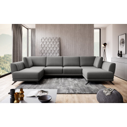Larco U-shaped corner sofa with sleeping function - an elegant and modern piece of lounge furniture by day; a full-size, comfortable bed by night. When unfolded, the corner gives a sleeping area of: 320 x 124 centimeters. Larco is very easy to unfold, as it is equipped with a DL automatic. The operation of this simple mechanism consists in extending one part of the corner and then placing the backrests to create a double sleeping area. Besides, the piece of furniture also has a bedding container, which saves space in the closet. In addition, the Larco corner sofa is spacious enough for every household member to find a place on it, as its dimensions are: 362 x 191 x 90 centimeters. What's more, the Larco corner is eye-catching and is not only incredibly comfortable, but also beautifully keeps its shape. This is caused by filling the seat with highly elastic HR foam, which is resistant to deformation and has the ability to regain its original shape. In addition, the HR foam adapts to the body's alignment, so it is really very comfortable. Larco corner sofa has decorative stitching on the interiors of the furniture's sides, and the steel legs are certainly an element that adds character to the corner.