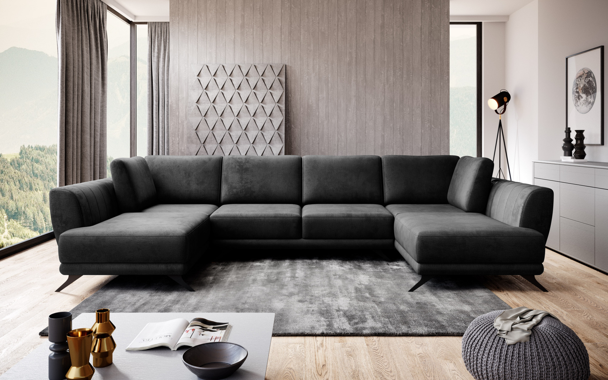 Larco U-shaped corner sofa with sleeping function - an elegant and modern piece of lounge furniture by day; a full-size, comfortable bed by night. When unfolded, the corner gives a sleeping area of: 320 x 124 centimeters. Larco is very easy to unfold, as it is equipped with a DL automatic. The operation of this simple mechanism consists in extending one part of the corner and then placing the backrests to create a double sleeping area. Besides, the piece of furniture also has a bedding container, which saves space in the closet. In addition, the Larco corner sofa is spacious enough for every household member to find a place on it, as its dimensions are: 362 x 191 x 90 centimeters. What's more, the Larco corner is eye-catching and is not only incredibly comfortable, but also beautifully keeps its shape. This is caused by filling the seat with highly elastic HR foam, which is resistant to deformation and has the ability to regain its original shape. In addition, the HR foam adapts to the body's alignment, so it is really very comfortable. Larco corner sofa has decorative stitching on the interiors of the furniture's sides, and the steel legs are certainly an element that adds character to the corner.
