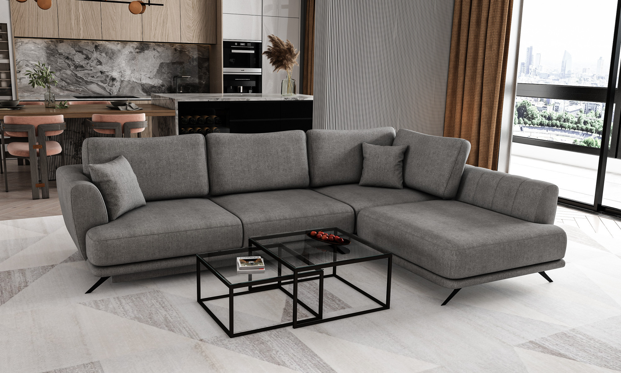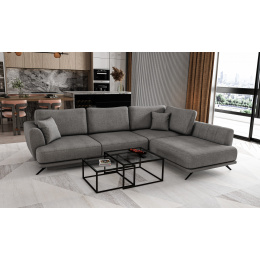 Larde is an exceptionally cozy, yet comfortable and chic L-shaped corner sofa, measuring 276 x 191 x 90 cm. Its distinguishing features include: stable construction, subdued yet interesting design, upholstered back, large cushions, stylish legs that give lightness to the whole structure, and a deep, soft seat made of HR foam. They also guarantee proper body positioning while resting and considerable comfort. The Larde corner sofa is a multifunctional piece of furniture, as it provides the maximum level of comfort both during the day and at night. After unfolding the sofa using the intuitive and uncomplicated DL mechanism, we get a sleeping surface of 126 x 240cm and a capacious storage space for bedding. Larde is a piece of furniture that will be the answer to all your requirements. It has everything you need to achieve rest at the highest level. We invite you to take a look at our offer.