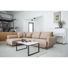 Larde is an exceptionally cozy, yet comfortable and chic L-shaped corner sofa, measuring 276 x 191 x 90 cm. Its distinguishing features include: stable construction, subdued yet interesting design, upholstered back, large cushions, stylish legs that give lightness to the whole structure, and a deep, soft seat made of HR foam. They also guarantee proper body positioning while resting and considerable comfort. The Larde corner sofa is a multifunctional piece of furniture, as it provides the maximum level of comfort both during the day and at night. After unfolding the sofa using the intuitive and uncomplicated DL mechanism, we get a sleeping surface of 126 x 240cm and a capacious storage space for bedding. Larde is a piece of furniture that will be the answer to all your requirements. It has everything you need to achieve rest at the highest level. We invite you to take a look at our offer.
