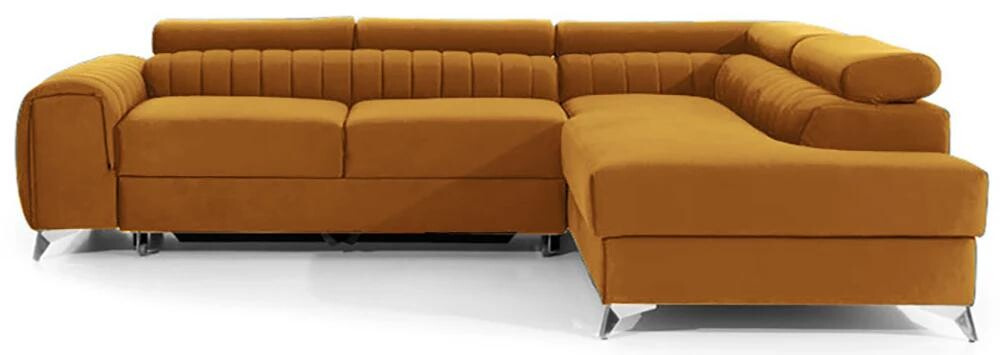Laurence is a stylish, functional and, above all, elegant corner sofa for discerning connoisseurs of comfort. The high comfort of rest is enhanced by adjustable high headrests and a wide seat. The furniture, measuring 278 x 205 x 92 cm, is made of B-type corrugated spring, T30 and HR foam, which will ensure the highest comfort during daily use of the sofa during the day, as well as the bed after dark, because thanks to the dolphin-type function the Laurence corner is also suitable for night rest. The L-shaped corner sofa is equipped with a sleeping function of 123 x 193 cm. Besides, it also has a spacious bedding container. With elegant stitching and 9 cm steel legs, the corner sofa is kept in a modern finishing style. The product is available in all fabrics from the Eltap collection. If you are looking for a breath of fresh air and a modernistic finish - Laurence will certainly be perfect for you.
