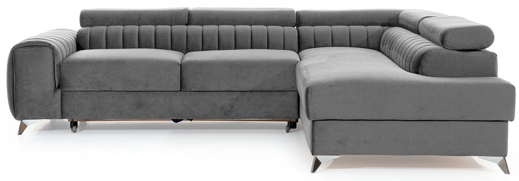 Laurence is a stylish, functional and, above all, elegant corner sofa for discerning connoisseurs of comfort. The high comfort of rest is enhanced by adjustable high headrests and a wide seat. The furniture, measuring 278 x 205 x 92 cm, is made of B-type corrugated spring, T30 and HR foam, which will ensure the highest comfort during daily use of the sofa during the day, as well as the bed after dark, because thanks to the dolphin-type function the Laurence corner is also suitable for night rest. The L-shaped corner sofa is equipped with a sleeping function of 123 x 193 cm. Besides, it also has a spacious bedding container. With elegant stitching and 9 cm steel legs, the corner sofa is kept in a modern finishing style. The product is available in all fabrics from the Eltap collection. If you are looking for a breath of fresh air and a modernistic finish - Laurence will certainly be perfect for you.